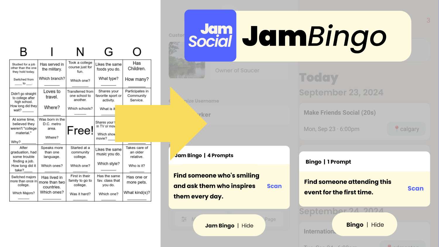 - Create your Jam Bingo: Use the Jam Bingo dashboard to add your custom prompts—fun facts, challenges, or conversation starters.